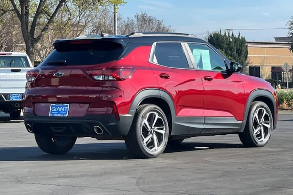 Giant Chevrolet is proud to offer this 2023 Chevrolet TrailBlazer RS Crimson Metallic. Clean CARFAX. 1.3L Ecotec Turbo DOHC SIDI w/VVT 60 pt Inspection, Low Miles, Extra Clean!, One Owner, Non Smoker!, Recent Oil Change, Well equipped with 1 Type-A & 1 Type-C USB Charging-Only Ports, Well equipped with 120-Volt Power Outlet, Well equipped with 2-Way Adjustable Front Head Restraints, Well equipped with 2-Way Power Driver Lumbar Seat Adjuster, Well equipped with 4-Way Manual Front Passenger Seat Adjuster, Well equipped with 4-Wheel Disc Brakes, Well equipped with 4.2 Diagonal Multi-Color Driver Info Center, Well equipped with 5.45 Axle Ratio, Well equipped with 6 Speakers, Well equipped with 6-Speaker Audio System Feature, Well equipped with 7 Diagonal Color Touchscreen, Well equipped with 8-Way Power Driver Seat Adjuster, Well equipped with 8 Diagonal Color Touchscreen Display, Well equipped with ABS brakes, Well equipped with Adaptive Cruise Control, Well equipped with Air Conditioning, Well equipped with Alloy wheels, Well equipped with AM/FM radio: SiriusXM, Well equipped with Auto High-beam Headlights, Well equipped with Bose Premium 7-Speaker Audio System Feature, Well equipped with Brake assist, Well equipped with Bumpers: body-color, Well equipped with Cabin Humidity Sensor, Well equipped with Cargo Mat, Well equipped with Cloth w/Leatherette Seat Trim, Well equipped with Compass, Well equipped with Convenience Package, Well equipped with Delay-off headlights, Well equipped with Driver & Front Passenger Illuminated Vanity Mirrors, Well equipped with Driver Confidence Package, Well equipped with Driver door bin, Well equipped with Driver vanity mirror, Well equipped with Dual front impact airbags, Well equipped with Dual front side impact airbags, Well equipped with Dual-Pane Panoramic Power Sunroof, Well equipped with Electronic Stability Control, Well equipped with Emergency communication system: OnStar and Chevrolet connected services capable, Well equipped with Exterior Parking Camera Rear, Well equipped with Flat-Folding Front Passenger Seatback, Well equipped with Front & Rear All-Weather Floor Liners (LPO), Well equipped with Front anti-roll bar, Well equipped with Front Bucket Seats, Well equipped with Front Center Armrest, Well equipped with Front fog lights, Well equipped with Front License Plate Bracket, Well equipped with Front reading lights, Well equipped with Front wheel independent suspension, Well equipped with Fully automatic headlights, Well equipped with Hands-Free Power Programmable Liftgate, Well equipped with HD Radio, Well equipped with HD Rear Vision Camera, Well equipped with Heated door mirrors, Well equipped with Heated Driver & Front Passenger Seats, Well equipped with Heated front seats, Well equipped with Heated Steering Wheel, Well equipped with Heated steering wheel, Well equipped with Illuminated entry, Well equipped with Inside Rear-View Auto-Dimming Mirror, Well equipped with Knee airbag, Well equipped with Lane Change Alert w/Side Blind Zone Alert, Well equipped with Leather Shift Knob, Well equipped with Leather steering wheel, Well equipped with LED Headlamps, Well equipped with Low tire pressure warning, Well equipped with Memory Card Receptacle, Well equipped with Mosaic Black Metallic Two-Tone Roof, Well equipped with Not Equipped w/Rear Park Assist (060), Well equipped with Occupant sensing airbag, Well equipped with Overhead airbag, Well equipped with Overhead console, Well equipped with Panic alarm, Well equipped with Passenger door bin, Well equipped with Passenger vanity mirror, Well equipped with Power door mirrors, Well equipped with Power driver seat, Well equipped with Power steering, Well equipped with Power windows, Well equipped with Preferred Equipment Group 1RS, Well equipped with Radio data system, Well equipped with Radio: Chevrolet Infotainment 3 Plus System, Well equipped with Radio: Chevrolet Infotainment 3 Syste
