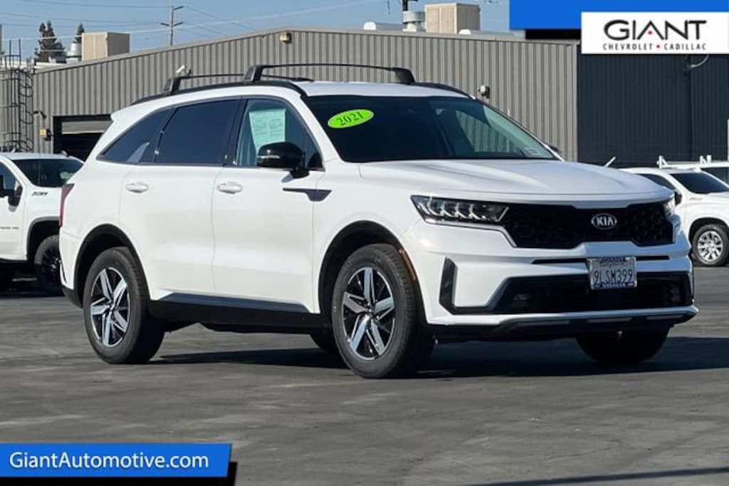 Giant Chevrolet is proud to offer this 2021 Kia Sorento EX Glacial White Pearl. 2.5L I4 DGI Turbocharged DOHC 16V LEV3-ULEV70 281hp 60 pt Inspection, Low Miles, Extra Clean!, 3rd Row Seat / 7 Passenger / Third Row, Recent Oil Change, Well equipped with 18 Machine-Finished Alloy Wheels, Well equipped with 3.316 Axle Ratio, Well equipped with 3rd row seats: split-bench, Well equipped with 4-Wheel Disc Brakes, Well equipped with 6 Speakers, Well equipped with ABS brakes, Well equipped with Air Conditioning, Well equipped with Alloy wheels, Well equipped with AM/FM radio: SiriusXM, Well equipped with Apple CarPlay & Android Auto, Well equipped with Auto High-beam Headlights, Well equipped with Automatic temperature control, Well equipped with Brake assist, Well equipped with Bumpers: body-color, Well equipped with Cargo Net, Well equipped with Carpeted Floor Mats, Well equipped with Delay-off headlights, Well equipped with Driver door bin, Well equipped with Driver vanity mirror, Well equipped with Dual front impact airbags, Well equipped with Dual front side impact airbags, Well equipped with Electronic Stability Control, Well equipped with Exterior Parking Camera Rear, Well equipped with Four wheel independent suspension, Well equipped with Front anti-roll bar, Well equipped with Front Bucket Seats, Well equipped with Front Center Armrest, Well equipped with Front dual zone A/C, Well equipped with Front fog lights, Well equipped with Front reading lights, Well equipped with Fully automatic headlights, Well equipped with Heated door mirrors, Well equipped with Heated Front Bucket Seats, Well equipped with Heated front seats, Well equipped with Illuminated entry, Well equipped with Knee airbag, Well equipped with Leather Shift Knob, Well equipped with Leather steering wheel, Well equipped with Low tire pressure warning, Well equipped with Occupant sensing airbag, Well equipped with Outside temperature display, Well equipped with Overhead airbag, Well equipped with Overhead console, Well equipped with Panic alarm, Well equipped with Passenger door bin, Well equipped with Passenger vanity mirror, Well equipped with Power door mirrors, Well equipped with Power driver seat, Well equipped with Power Liftgate, Well equipped with Power steering, Well equipped with Power windows, Well equipped with Premium Leatherette Seat Trim, Well equipped with Radio data system, Well equipped with Radio: AM/FM Audio System, Well equipped with Rear air conditioning, Well equipped with Rear anti-roll bar, Well equipped with Rear reading lights, Well equipped with Rear window defroster, Well equipped with Rear window wiper, Well equipped with Remote keyless entry, Well equipped with Roof rack: rails only, Well equipped with Security system, Well equipped with Speed control, Well equipped with Speed-sensing steering, Well equipped with Split folding rear seat, Well equipped with Spoiler, Well equipped with Steering wheel mounted audio controls, Well equipped with Tachometer, Well equipped with Telescoping steering wheel, Well equipped with Tilt steering wheel, Well equipped with Traction control, Well equipped with Trip computer, Well equipped with Turn signal indicator mirrors, Well equipped with Variably intermittent wipers. Odometer is 8693 miles below market average! 22/29 City/Highway MPG