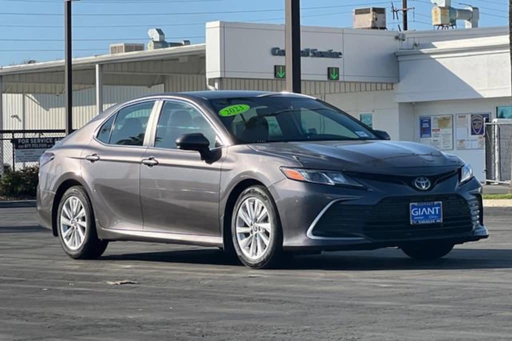 Giant Chevrolet is proud to offer this 2023 Toyota Camry LE Gray. 2.5L I4 DOHC 16V 60 pt Inspection, Low Miles, Extra Clean!, One Owner, Recent Oil Change, Well equipped with 4-Wheel Disc Brakes, Well equipped with 6 Speakers, Well equipped with 7.5J x 17 Alloy Wheels, Well equipped with ABS brakes, Well equipped with Air Conditioning, Well equipped with Alloy wheels, Well equipped with AM/FM radio: SiriusXM, Well equipped with Apple CarPlay/Android Auto, Well equipped with Auto High-beam Headlights, Well equipped with Automatic temperature control, Well equipped with Brake assist, Well equipped with Bumpers: body-color, Well equipped with Delay-off headlights, Well equipped with Driver door bin, Well equipped with Driver vanity mirror, Well equipped with Dual front impact airbags, Well equipped with Dual front side impact airbags, Well equipped with Electronic Stability Control, Well equipped with Emergency communication system: Safety Connect (1-year trial), Well equipped with Exterior Parking Camera Rear, Well equipped with Fabric Seat Trim, Well equipped with Four wheel independent suspension, Well equipped with Front anti-roll bar, Well equipped with Front Bucket Seats, Well equipped with Front Center Armrest, Well equipped with Front dual zone A/C, Well equipped with Front reading lights, Well equipped with Fully automatic headlights, Well equipped with Illuminated entry, Well equipped with Knee airbag, Well equipped with Low tire pressure warning, Well equipped with Occupant sensing airbag, Well equipped with Outside temperature display, Well equipped with Overhead airbag, Well equipped with Overhead console, Well equipped with Panic alarm, Well equipped with Passenger door bin, Well equipped with Passenger vanity mirror, Well equipped with Power door mirrors, Well equipped with Power driver seat, Well equipped with Power steering, Well equipped with Power windows, Well equipped with Radio data system, Well equipped with Radio: Audio, Well equipped with Rear anti-roll bar, Well equipped with Rear seat center armrest, Well equipped with Rear side impact airbag, Well equipped with Rear window defroster, Well equipped with Remote keyless entry, Well equipped with Security system, Well equipped with Speed control, Well equipped with Speed-sensing steering, Well equipped with Split folding rear seat, Well equipped with Steering wheel mounted audio controls, Well equipped with Tachometer, Well equipped with Telescoping steering wheel, Well equipped with Tilt steering wheel, Well equipped with Traction control, Well equipped with Trip computer, Well equipped with Variably intermittent wipers. Odometer is 1039 miles below market average! 28/39 City/Highway MPG